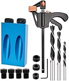 JUTOSU ドリルガイド ポケットホールジグ 15度の角度 木工斜め穴ロケーターセット 6/8/10mm ドリルビットパンチャー付き 穴あけ 木工用ガイド斜め穴ポジショナ アルミ合金製 木工用ツール ステップドリルビット 調整可能 木製作業 パンチロケーター 15点セット クランプ付き